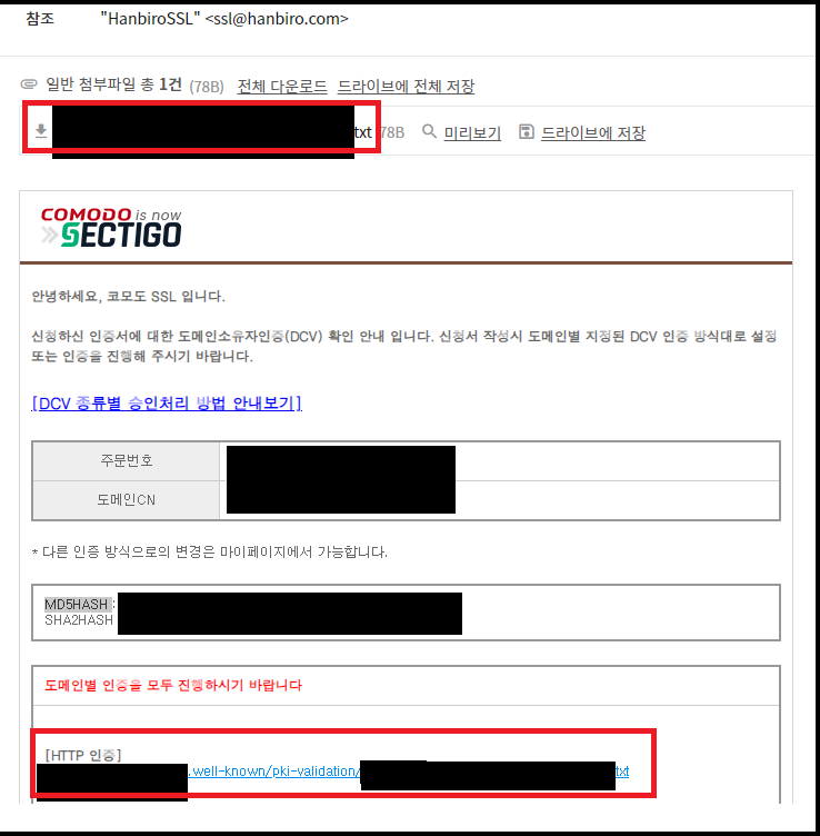 ssl 결제 (DCV 인증방법 : HTTP인증으로 선택) 후, 인증 안내 메일 수신