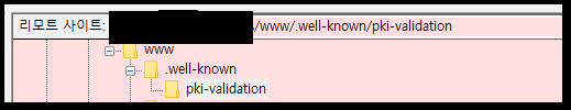 > 인증용 txt 를 ssl을 인증받으려는 도메인 서버의 /www/.well-known/pki-validation에 업로드