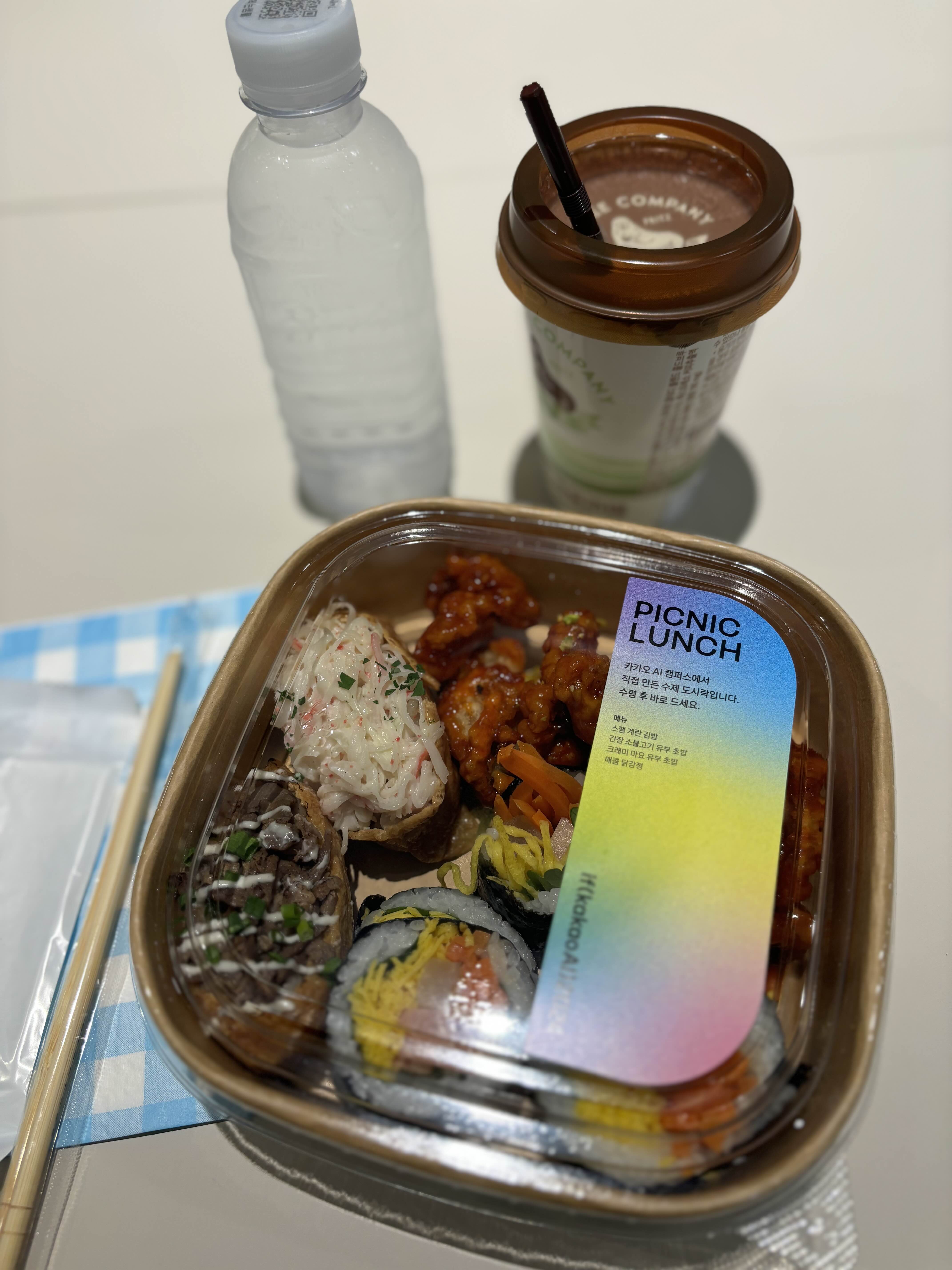 - 점심 : 김밥, 닭강정, 유부초밥 도시락