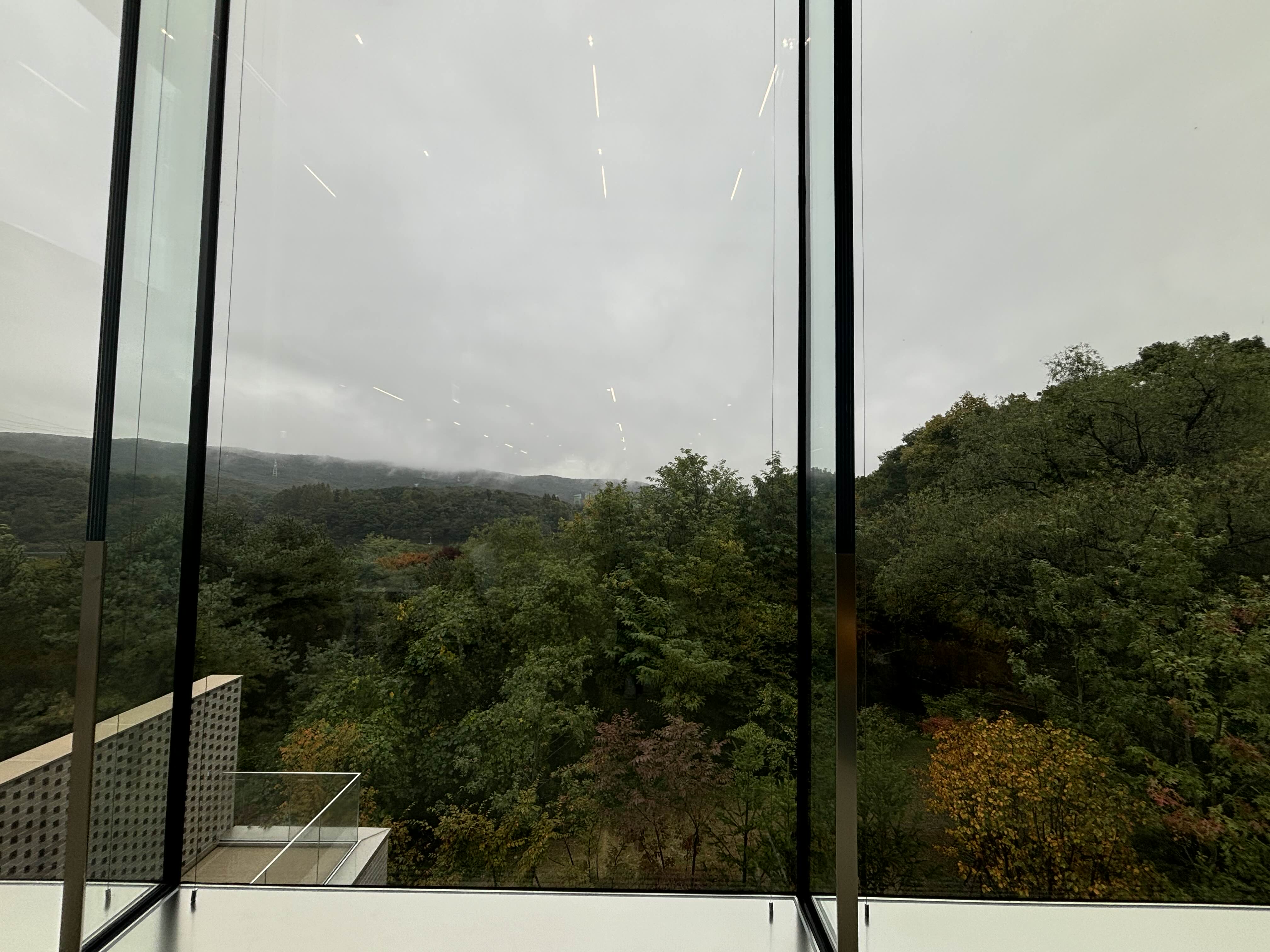 높은 통창으로 숲뷰가 그림처럼 보여서 감탄함