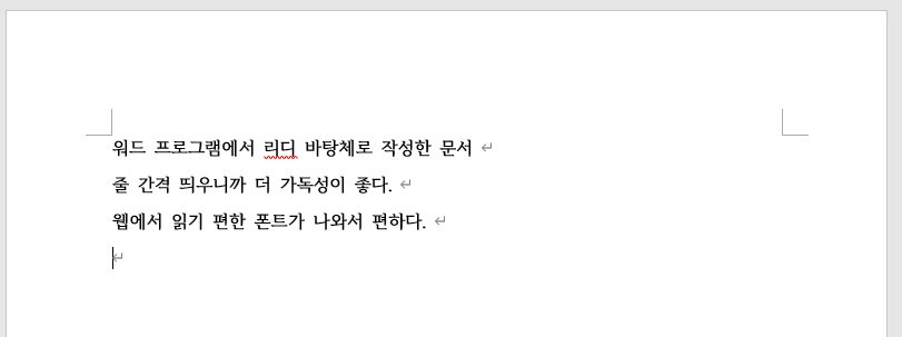 다만 리디 바탕체는 줄높이에 꽉 차는 크기라서 줄간격를 조금 띄워야 더 잘 읽힌다.